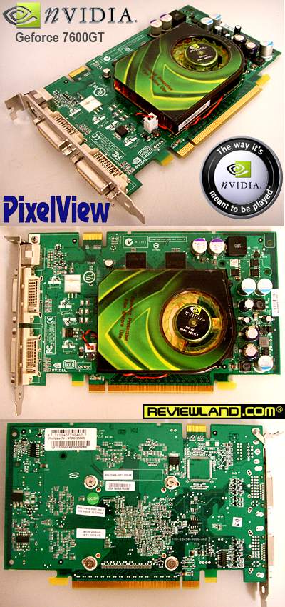 Seperti ASUS, Pixelview juga menggunakan nvidia reference board design dan reference cooler yang suaranya berisik untuk produk 7600GT-nya. Yang membedakan 7600GT Pixelview dengan ASUS adalah penggunaan grade GPU yang lebih rendah sehingga kemampuan overclocknya lebih rendah daripada 7600GT ASUS. Di kalangan overclocker, videocard Pixelview memang terkenal memiliki kemampuan overclock yang rendah. Ini terbukti pula pada Geforce 7600GT milik mereka yang hanya mampu dioverclock ke 595/845 saja. Hal ini menjadikan Pixelview 7600GT memiliki kinerja overclocking yang paling rendah dari yang lain.