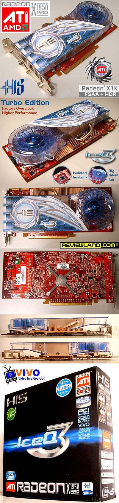 Edition". Tampaknya HIS memberikan jampi-jampi yang cukup ampuh pada X1950 Pro mereka sehingga X1950 Pro Turbo Edition ini layak dinobatkan sebagai videocard tercepat di kelas harga $250 (dengan kondisi clock default). Sekalipun kinerjanya garang, namun kemampuan overclock videocard bertampang gahar ini ternyata kurang memuaskan, ini karena pada dasarnya chip ATI RV570 memang sudah dioptimalkan sehingga kemampuannya hampir mencapai batas, apalagi HIS juga sudah mengoverclock dari pabriknya, sehingga kenaikan overclocknya semakin kecil lagi. Selain itu memory yang digunakan, yaitu Samsung 1.4ns tidak mampu dioverclock tinggi, sehingga akibatnya kenaikan overclock GPU dan memory cuma mencapai 658/769(1539) saja yang berarti kenaikan overclocknya cuma sekitar 15% dari clock default reference ATI, atau cuma sekitar 3% dari clock default HIS Turbo Edition yang sudah tinggi. Satu hal yang juga disayangkan yaitu dengan harga lebih mahal daripada X1950 Pro lansiran MSI yang bertatahkan memory 512MB, HIS X1950 Pro Turbo Edition ini ternyata cuma memiliki memory sebesar 256MB saja.