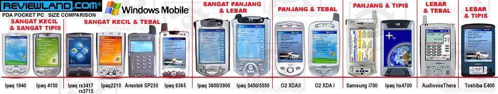 membeli PocketPC, dibawah ini dapat anda lihat perbandingan ukuran beberapa PocketPC yg
